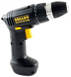 “Dat is de Drilldo”, zei hij. “Een ideaal cadeau voor de kinky klusser die zijn hand niet omdraait voor een kut klus.”