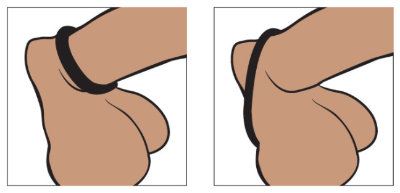 Het omdoen van de cockring kan op 2 manieren: 1. je kunt de ring aan de schacht van de penis plaatsen (de gebruikelijke manier) en 2. je kunt de ring ook achter de balzak plaatsen, tegen het lichaam aan. Advies: voordat je de ring omdoet smeer je hem aan de binnenkant eerst in met wat glijmiddel. Daarmee glijdt de ring een stuk soepeler.