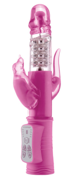 Het aapje zit op een stokje, ik bedoel de schacht. De top van de schacht kan ronddraaien en prikkelt zodoende alle gevoelige plekjes binnenin. Ook de kralen in de schacht kunnen roteren en masseren de binnenste schaamlippen. Met de drukknopjes op het bedieningspaneel kun je gemakkelijk de snelheden en de richting van de rotaties regelen. Kortom, de Tarzan 2.0. is een drie dubbele vibrator die je zowel inwendig als uitwendig verwent en ook het kleinste gaatje niet vergeet.